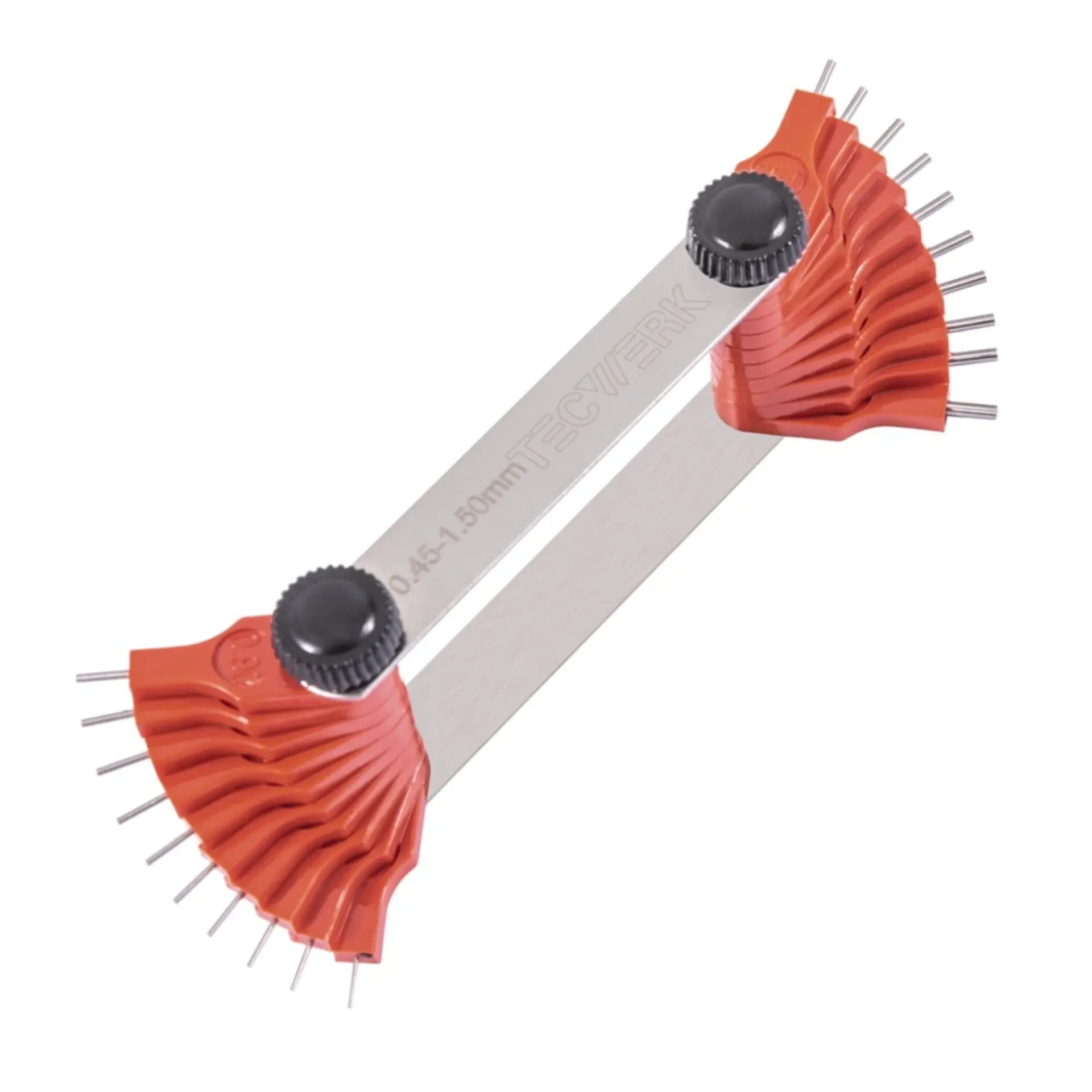 Düsenlehre für Messanwendungen mit verschiedenen Stahlstiften.